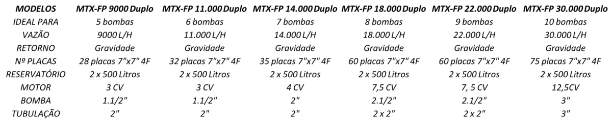 Características detalhadas do modelo MTX-FP 18000 DUPLO: